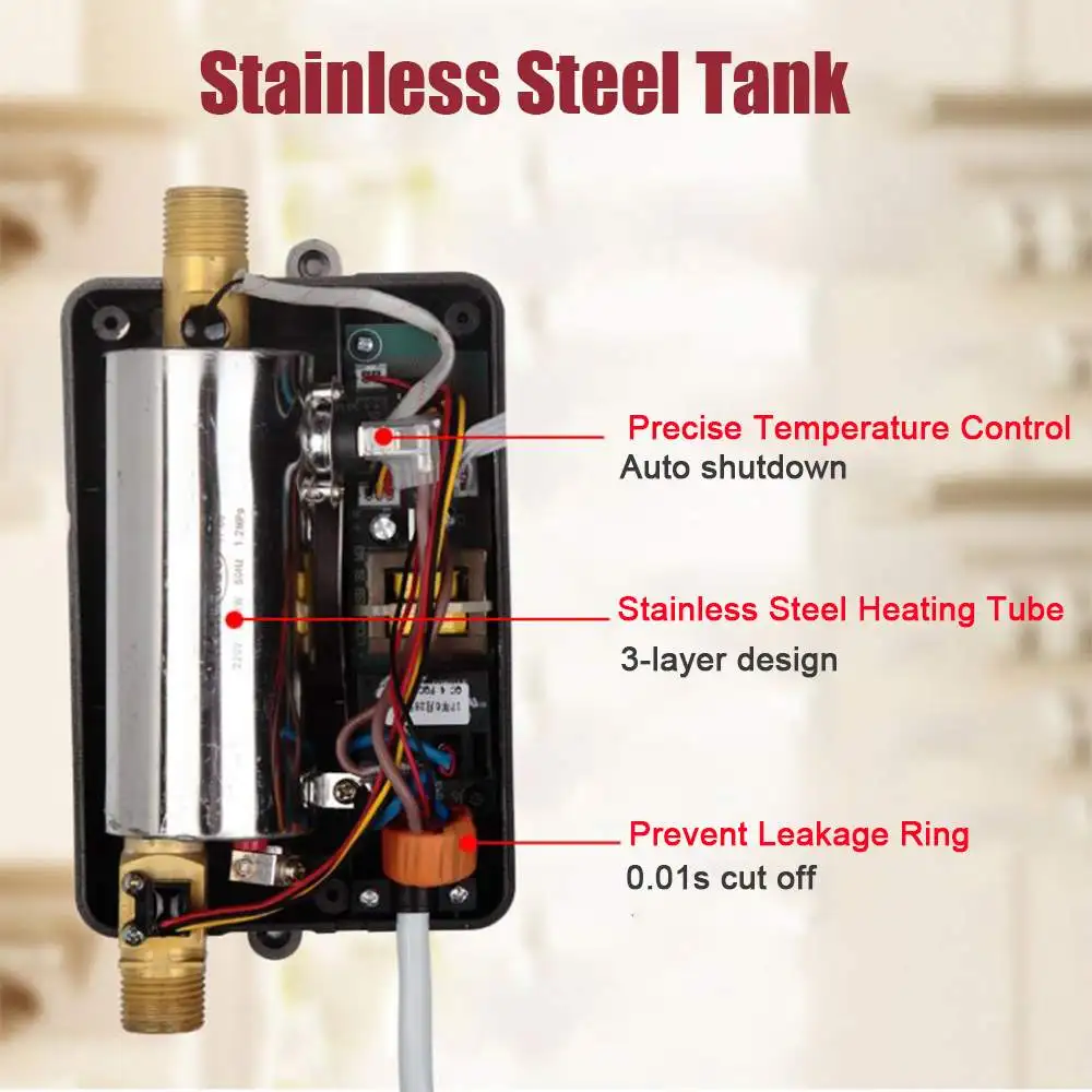 3800W Electric Water Heaters Instantaneous Instant Tankless Kitchen Water Heaters Faucet Temp Displ