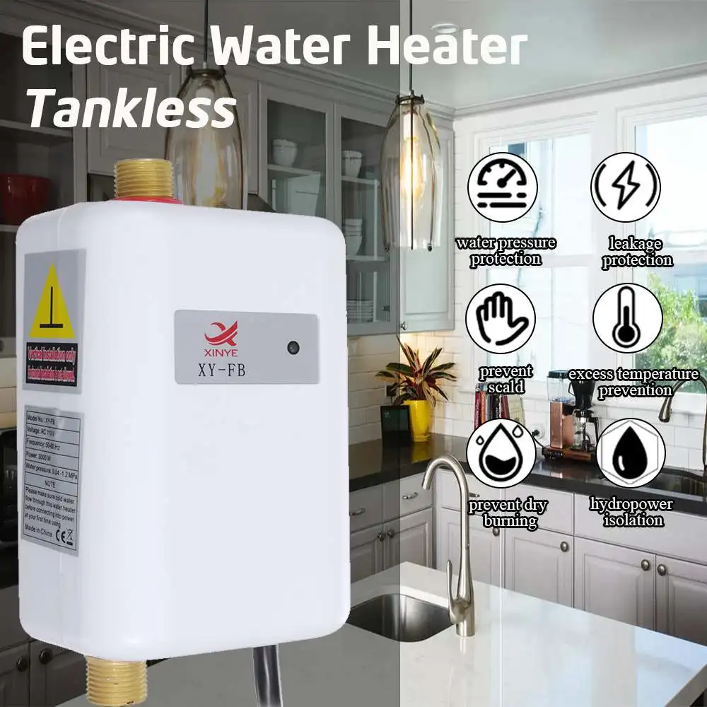 Best 3800W Electric Water Heaters Instantaneous Instant Tankless Kitchen Water Heaters Faucet Temp Displ
