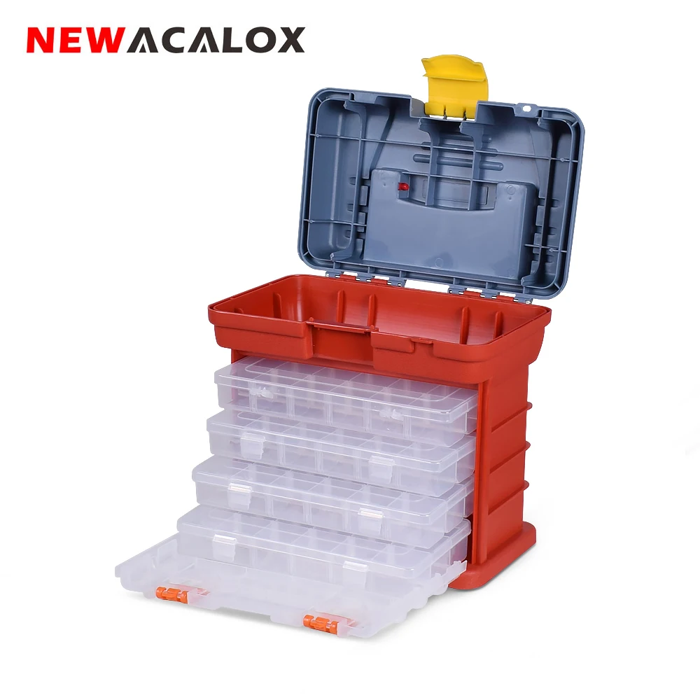 BEST QUALITY NEWACALOX Portable Multifunctional Hardware Storage Box with 4-layer Parts Plastic Box Outdoor For